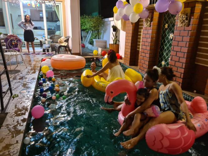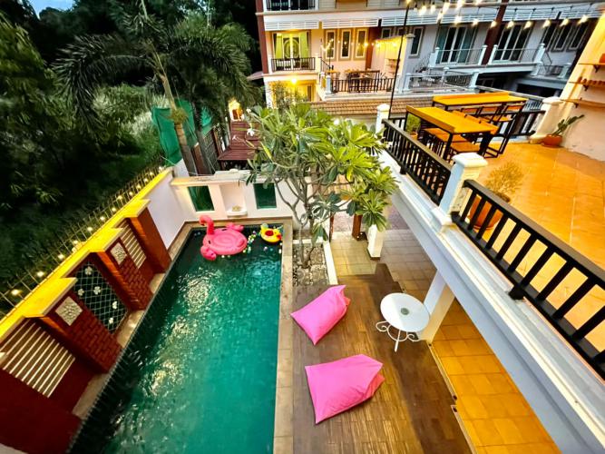 บ้านทาวโฮม 3 ชั้น สระส่วนตัว !! 4 ห้องนอน + 3 ห้องน้ำ แอร์ทุกห้อง บ้านอยู่หัวมุมห่างทะเลเพียง 700 เมตร ราคาประหยัดเหมาะสำหรับลูกค้าที่จะมาพักผ่อนกับครอบครัว บรรยากาศดี