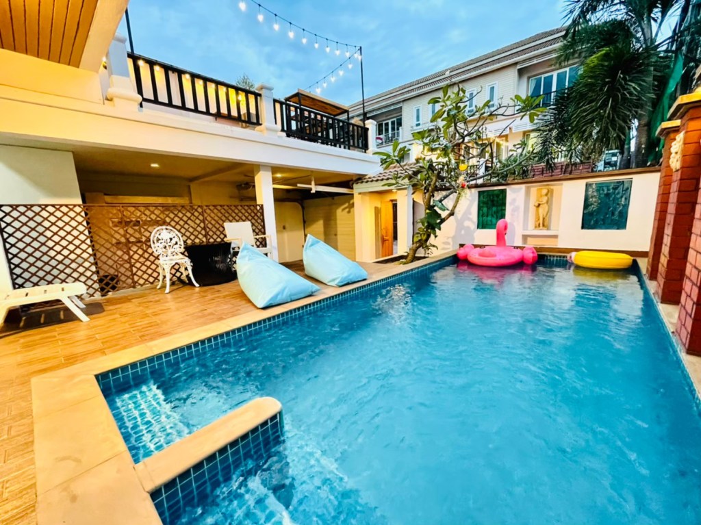 🏡 บ้านทาวโฮม 3 ชั้น สระส่วนตัว !! 4 ห้องนอน + 3 ห้องน้ำ แอร์ทุกห้อง บ้านอยู่หัวมุมห่างทะเลเพียง 700 เมตร ราคาประหยัดเหมาะสำหรับลูกค้าที่จะมาพักผ่อนกับครอบครัว บรรยากาศดี