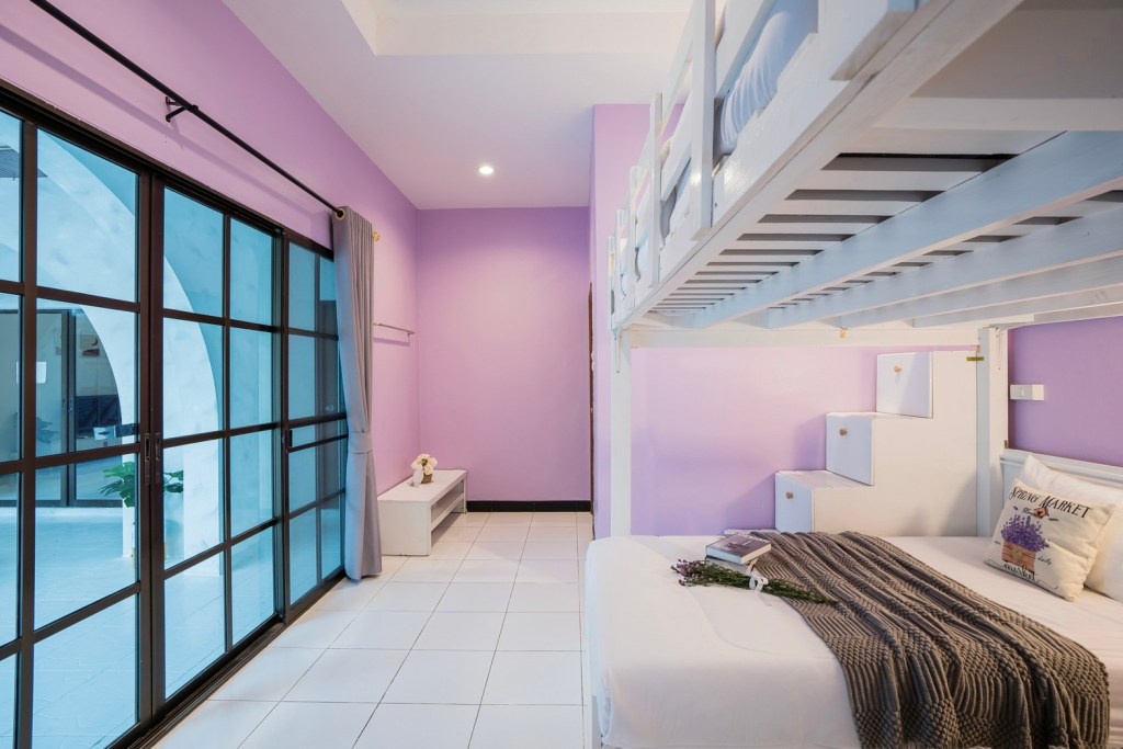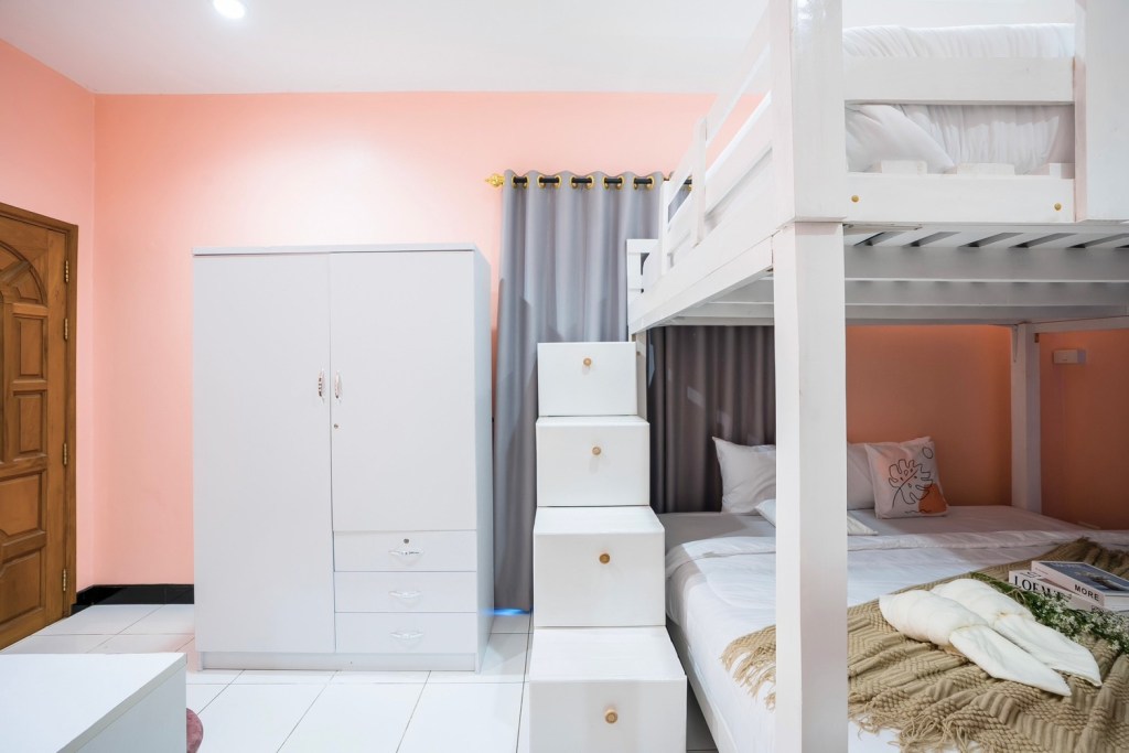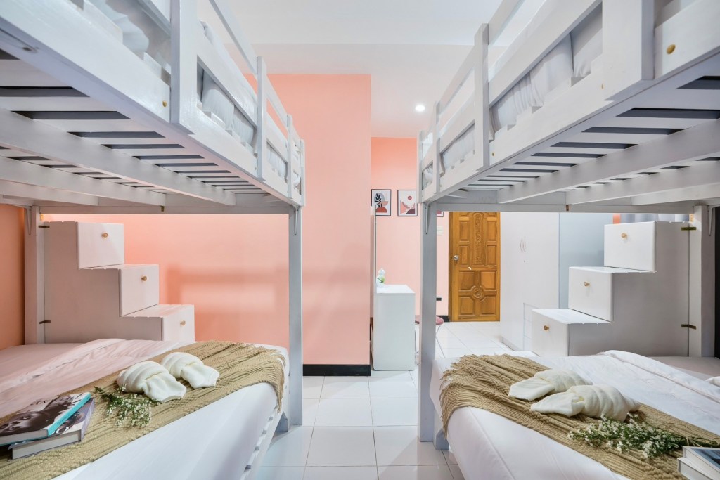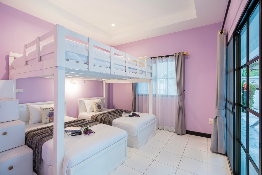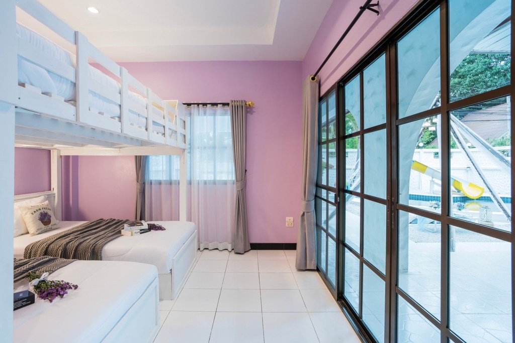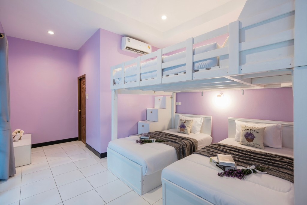 • ห้องที่ 1 : เตียงสองชั้นขนาด 6 ฟุต 1 เตียง / เตียงขนาด 3.5 ฟุต 2 เตียง (ห้องน้ำในตัว)