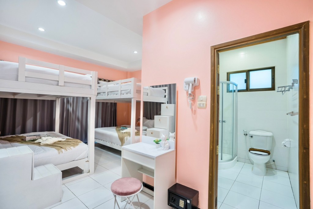 • ห้องที่ 3 : เตียงสองชั้นขนาด 6 ฟุต 4 เตียง (ห้องน้ำในตัว)