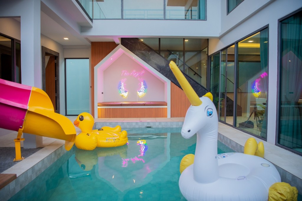 พูลวิลล่าเปิดสไตล์มินิมอล บ้านสวยมาก สายคาเฟ่ เหมาาะกับทุกวัย ไม่ว่าจะมุมถ่ายรูปสุดเกร๋ ติดปีกนางฟ้าแสนสวย บ้านสวย บรรยากาศดี หลังใหญ่ มุมถ่ายรูปสวยๆก็เยอะจัดเต็ม จองตั๋วเก็บกระเป๋าเลยคร้า🧚♀🧚♀