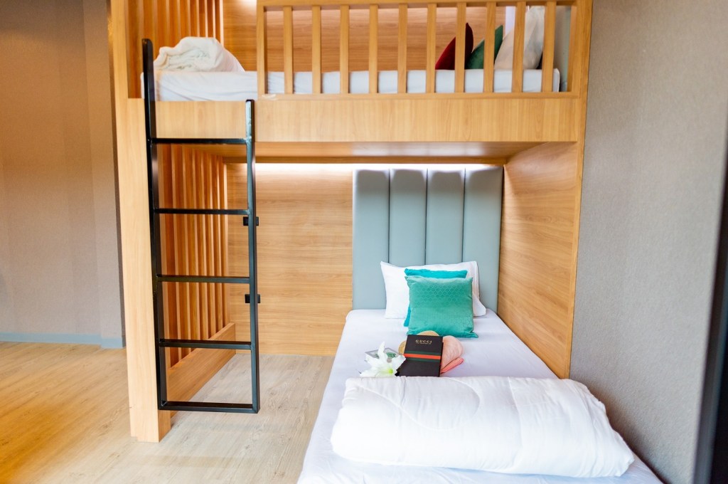 ห้องที่3 เตียง 6 ฟุต 2 เตียง 3.5 ฟุต 2 เตียง (เตียง 2 ชั้น)