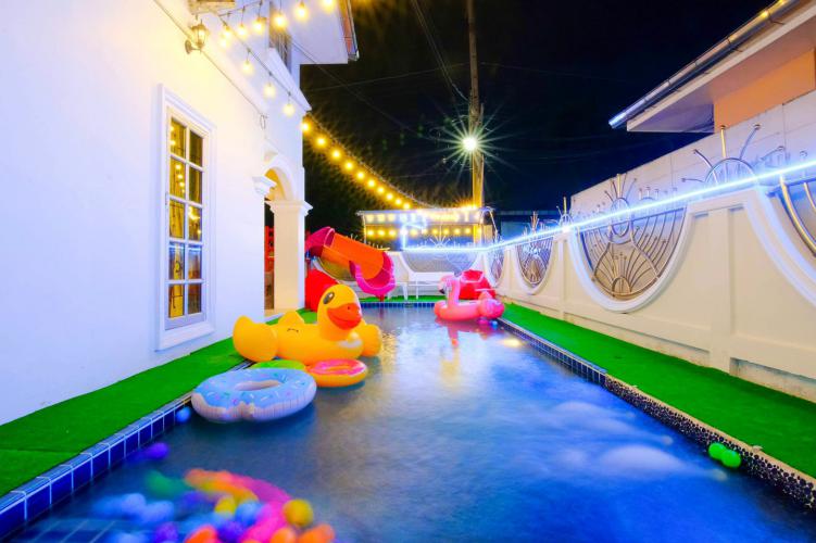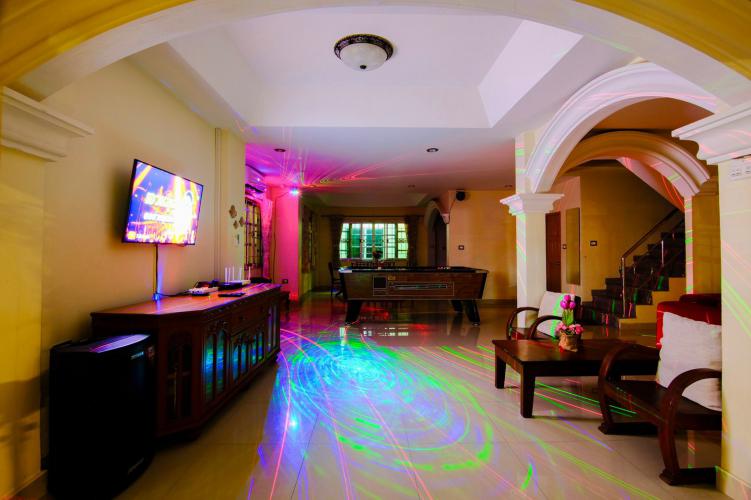 โซนนั่งเล่นกว้างขวางสบาย มีที่นั่งทานอาหารทั้งในบ้าน นอกบ้าน ริมสระว่ายน้ำ และทุกห้องนอนที่นอนอย่างดี หลับสบาย ระบบแสง สี เสียง จัดเต็ม