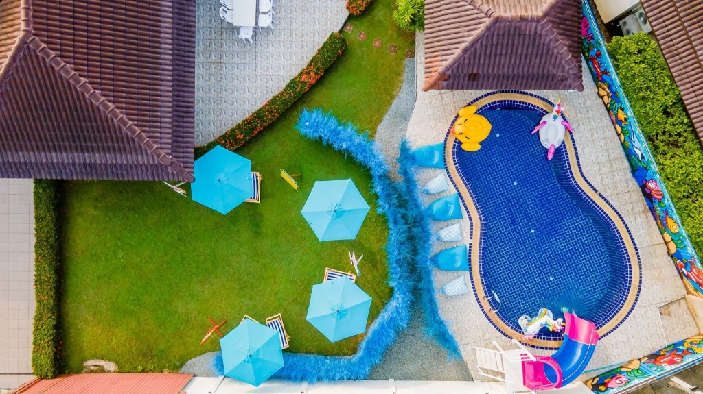 ⛱️⛱️ก็ให้เป็นสีฟ้าเหมือนยกทะเลมาไว้ในบ้าน บ้านสไตล์แนวอาร์ตนิดๆ ที่มากับลานกิจกรรมที่กว้างขวาง อีกทั้งสนามหญ้า ที่นั่งชิวฟิวอารมณ์เหมือนชายหาด ตอบโจทย์ที่สุดในวันพักผ่อน พร้อมมุมถ่ายภาพแนวอาร์ต แนวน่ารัก พร้อมต้อนรับทุกท่านเป็นอย่างดี เพื่อให้เหมาะกับวันพักผ่อนอันอบอุ่นที่ลงตัวเพื่อคนที่คุณรัก…🌴⛱️🌊