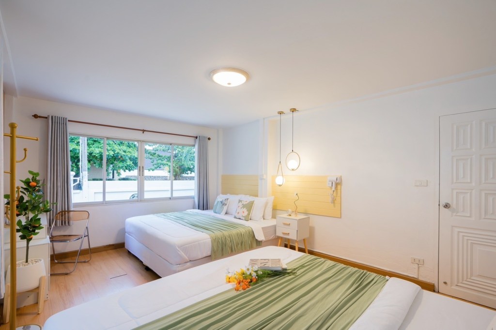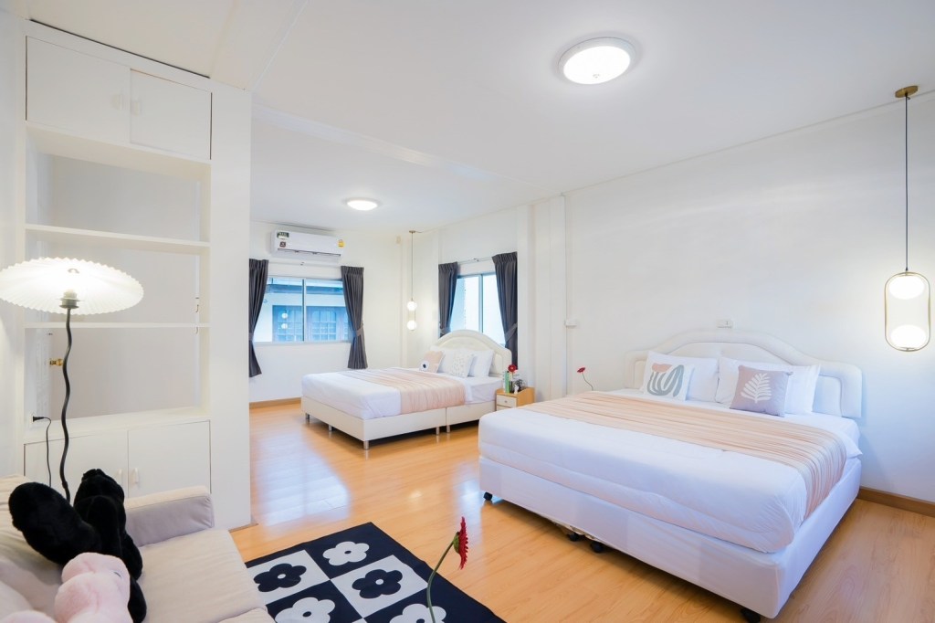 - ห้องที่ 1 : เตียง 6 ฟุต 2 เตียง (อยู่ชั้นล่าง/ไม่มีห้องน้ำในตัว)