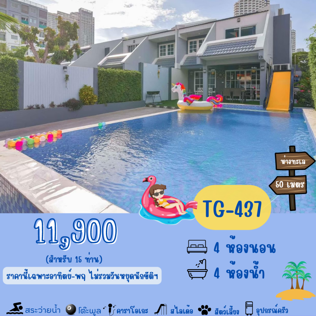 🔥เปิดตัวบ้านพักพูลวิลล่ากลางใจหาดจอมเทียน พัทยา บ้านขนาด 4 ห้องนอน 4 ห้องน้ำ ใกล้ทะเลแค่ 100เมตร เหมาะสำหรับกรุ๊ปไม่เกิน20คน ที่ต้องการทั้งทะเล สระว่ายน้ำส่วนตัว สไลเดอร์