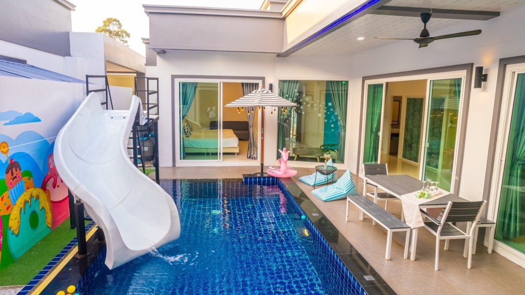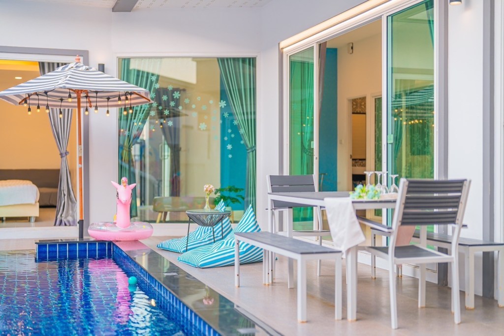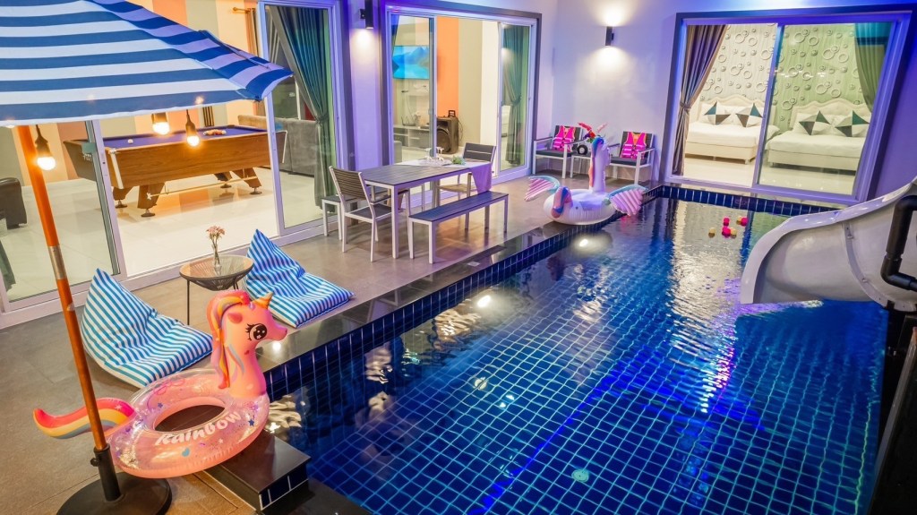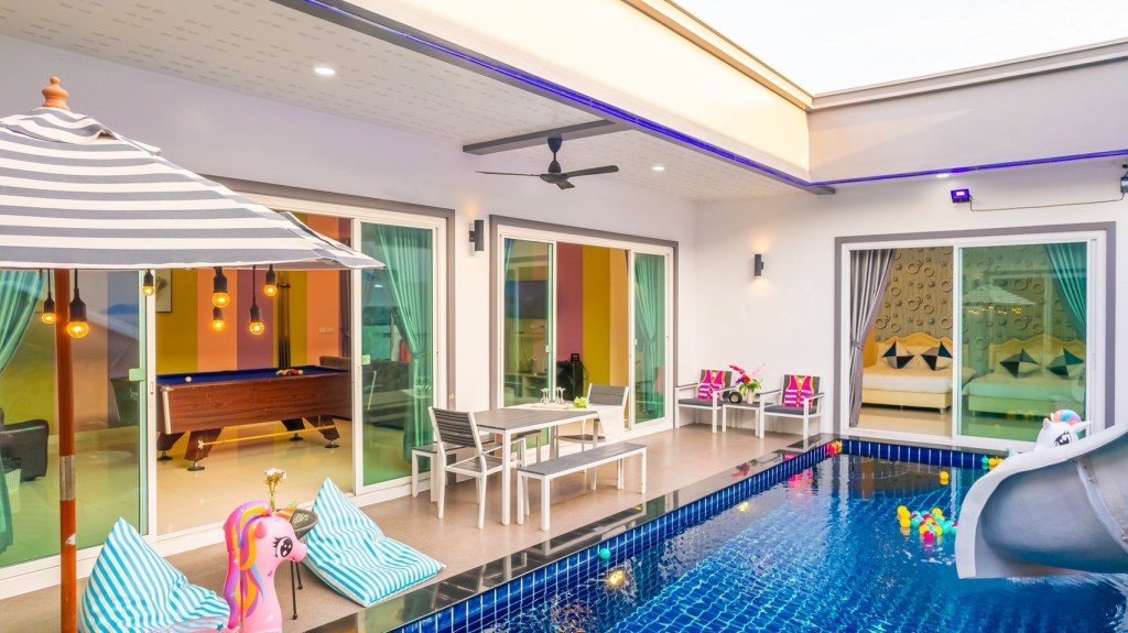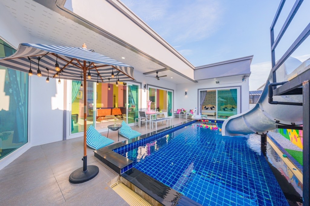 🔥พูลวิลล่าสไตล์โมเดิร์น พูลวิลล่าที่ใกล้แหล่งท่องเที่ยวทั้งในพัทยาและสัตหีบ. เหมาะสำหรับการพักผ่อนแบบครอบครัว แก๊งค์เพื่อน ปาร์ตี้สังสรรค์ เน้นโทนสีฟ้าขาว ให้ฟิวบรรยากาศสบายๆชิวๆเป็นส่วนตัว ใกล้ทะเลขับรถเพียง5นาที.