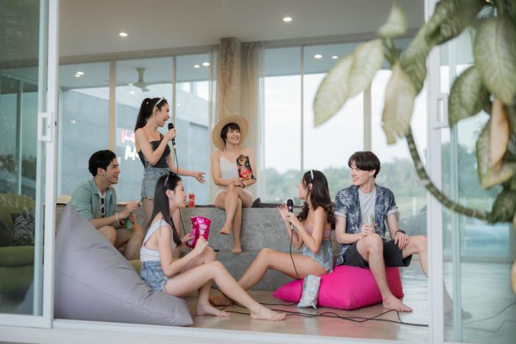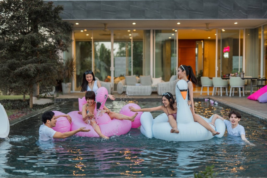 ใช้เสียงภายนอกได้ทุ่ม 3 ทุ่มเท่านั้น และในบ้านปิดประตูให้มิดชิดใช้เสียงได้ตลอด แต่ห้ามดังจนเกินควร ห้ามนำลำโพงออกมาริมสระน้ำ