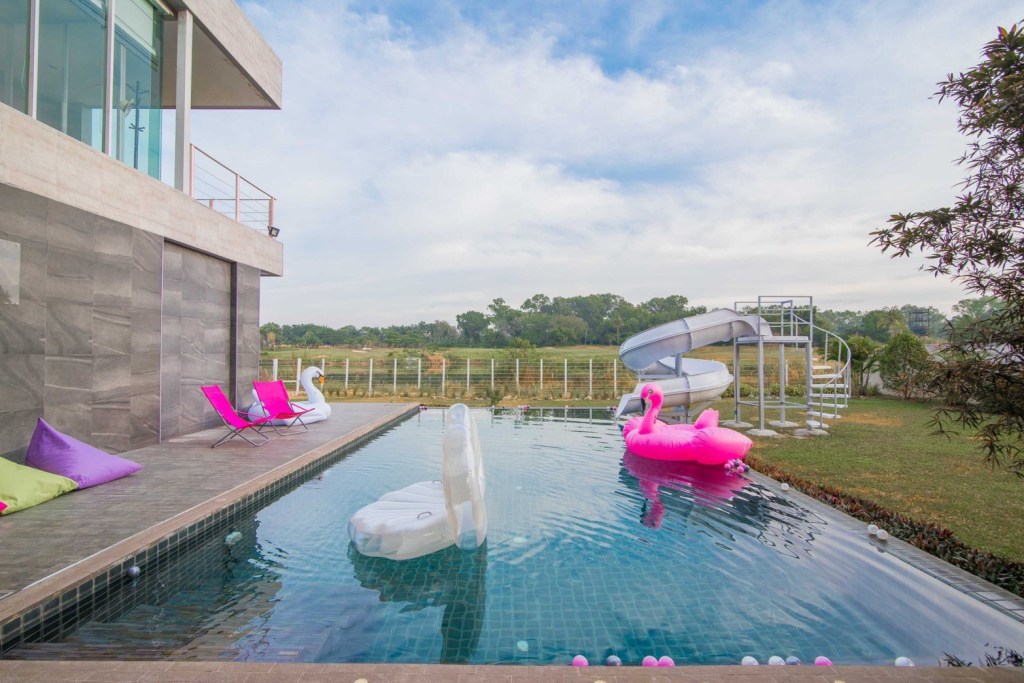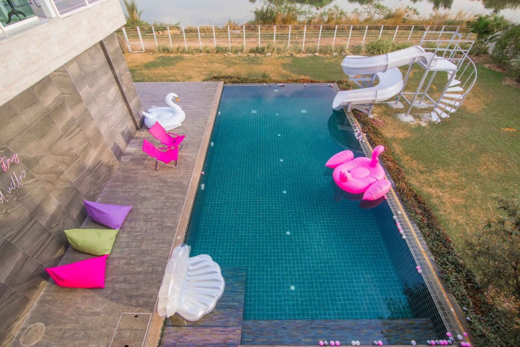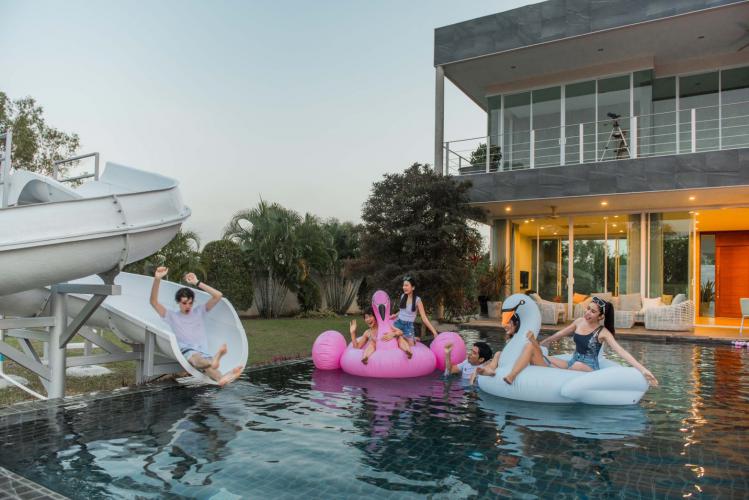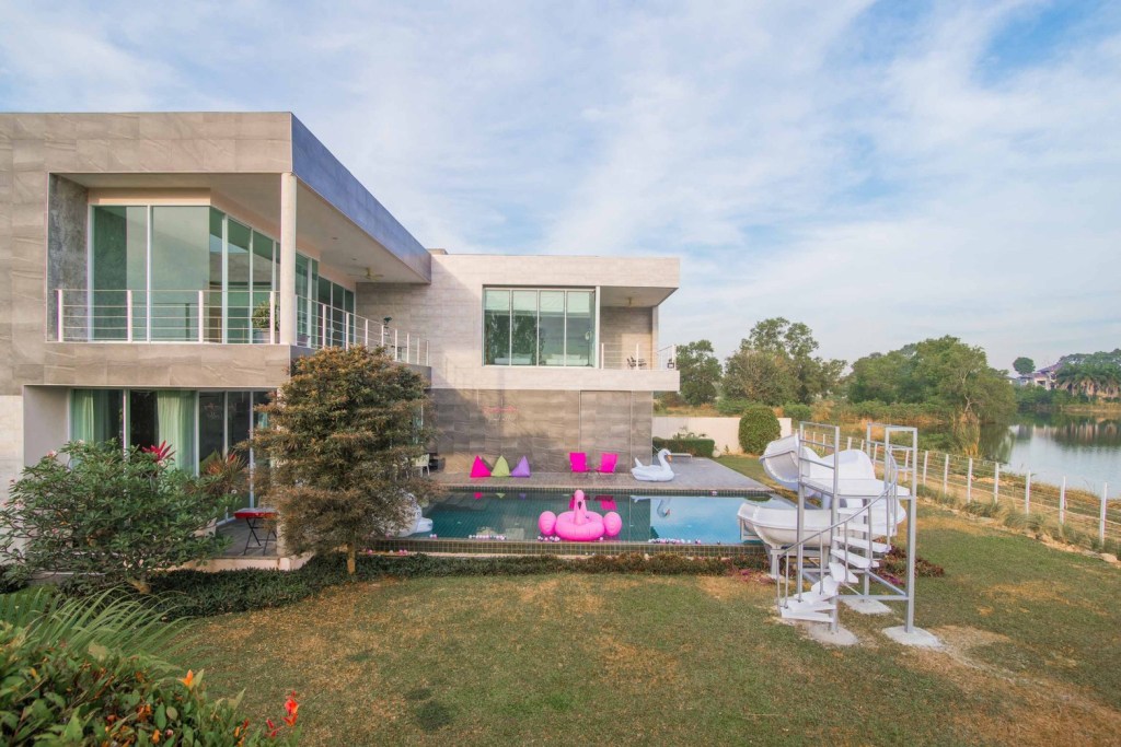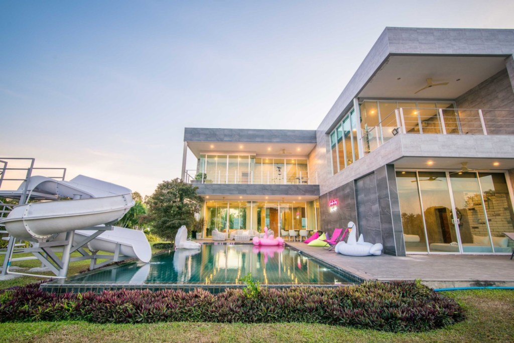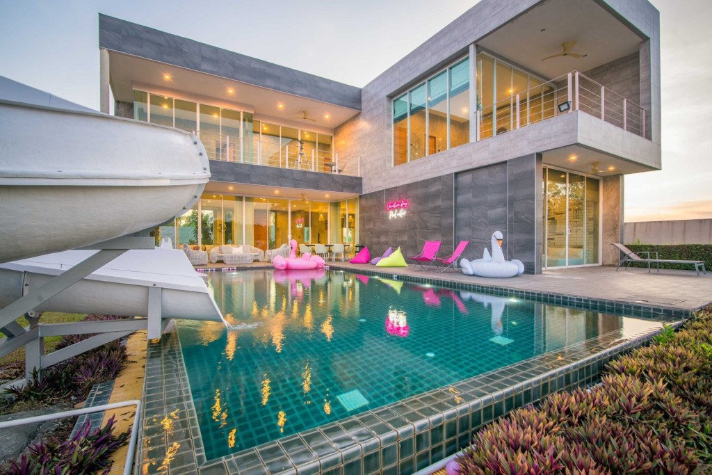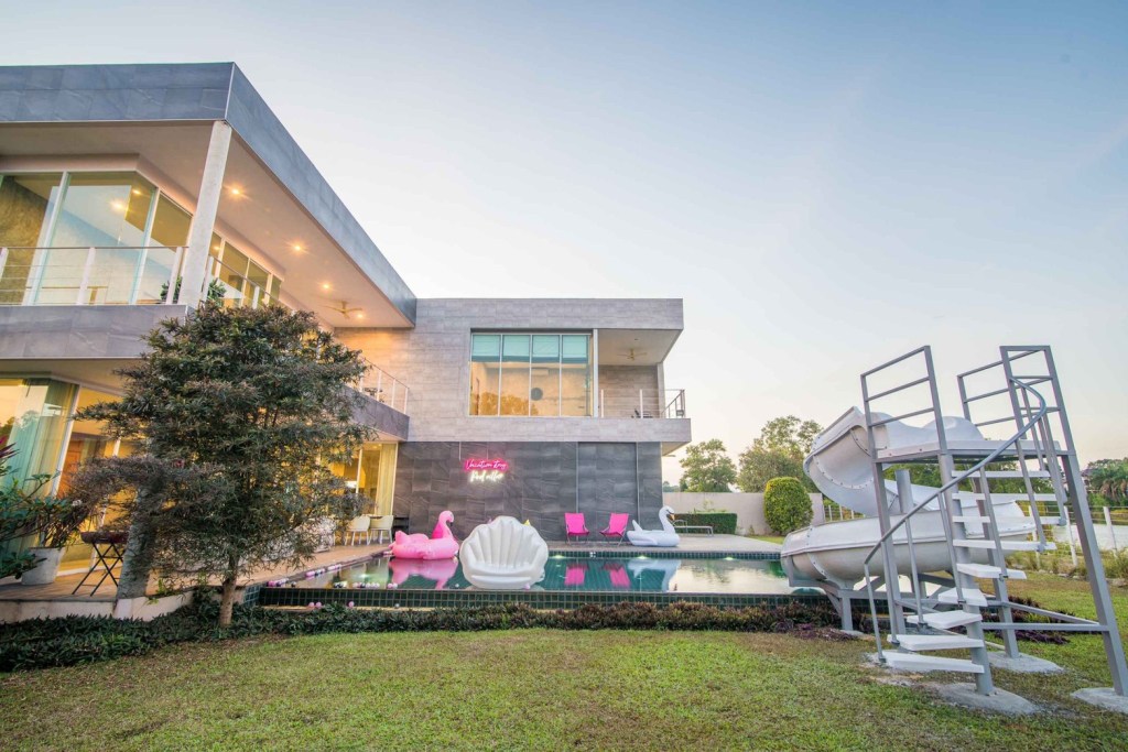🔥 รายละเอียดที่พัก 4 ห้องนอน 5 ห้องน้ำ 🏝ทะเลสาปส่วนตัว ห่างหาดเพียง3.8กม. Private pool หนีความวุ่นวาย ไม่ต้องใกล้ใคร Modern luxury สุดๆ สระว่ายน้ำขนาด12×5เมตร ใหญ่สุดๆ แถมสนุกสุดๆกับสไลเดอร์ยาวถึง 10 เมตร ตัว