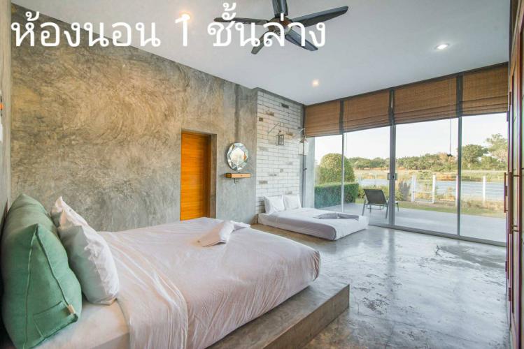 ✅ห้องนอนที่ 1. อยู่ห้องนอนล่าง เป็นเตียงคู่ 5 ฟุต กับ 6 ฟุต ห้องน้ำในตัว