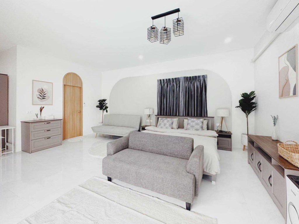 (-) ห้องนอนที่ 4 มี 6 ฟุต 2 เตียง โซฟาเบด 1 เตียง มีห้องน้ำในตัว