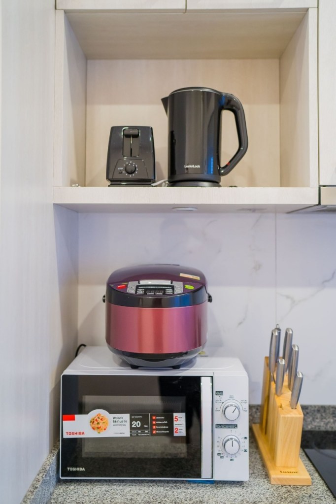 อุปกรณ์ครัว กะทะ หม้อ หม้อหุงข้าว จาน ชาม ตะหลิว ช้อนส้อม ที่คีบ ไมโครเวฟ แก้ว ถ้วย ถ้วยน้ำจิ้ม มีด เขียง ครก ช้อนเล็ก ช้อนกลาง กะละมัง กาน้ำร้อน เตาอบ