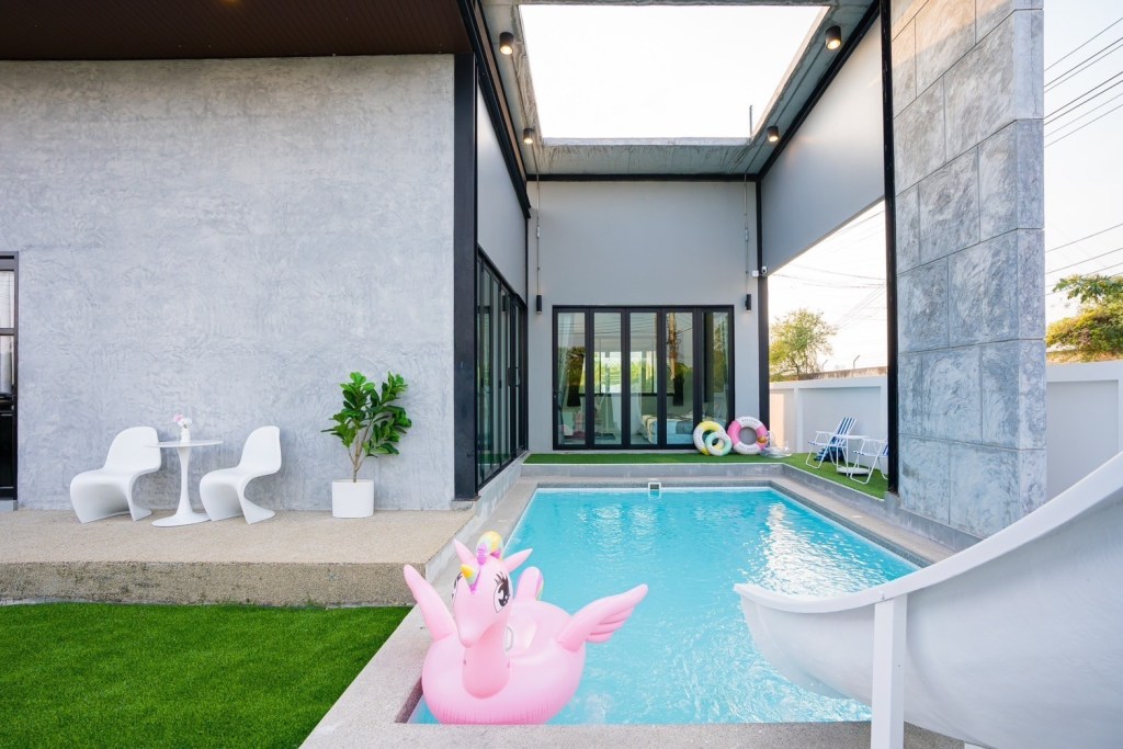 ✅ สระว่ายน้ำส่วนตัวขนาด 4×8 เมตร (สระระบบคลอรีน)
