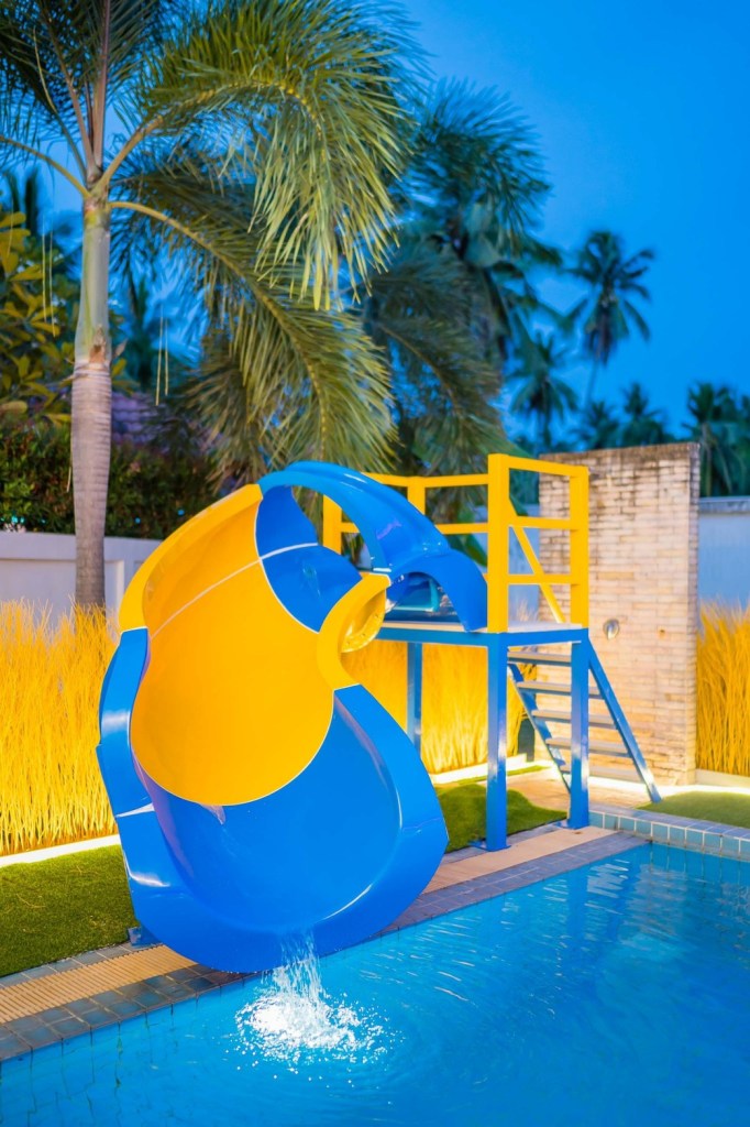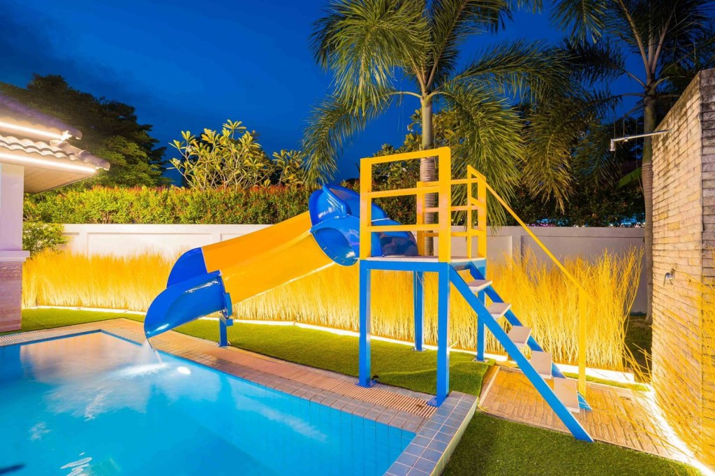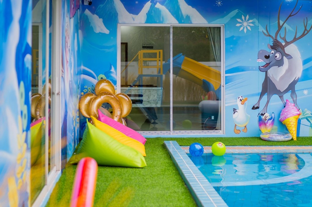 ขนานสระ 84 เมตร ลึก 150ซม สระเด็ก 22 เมตร ลึก 60ซม