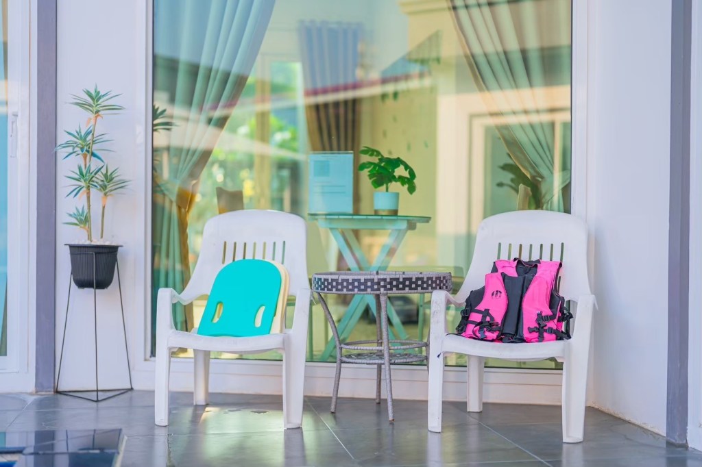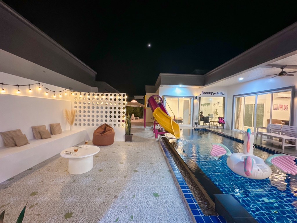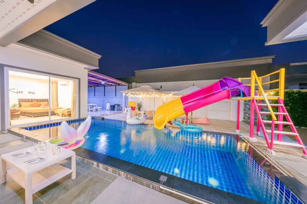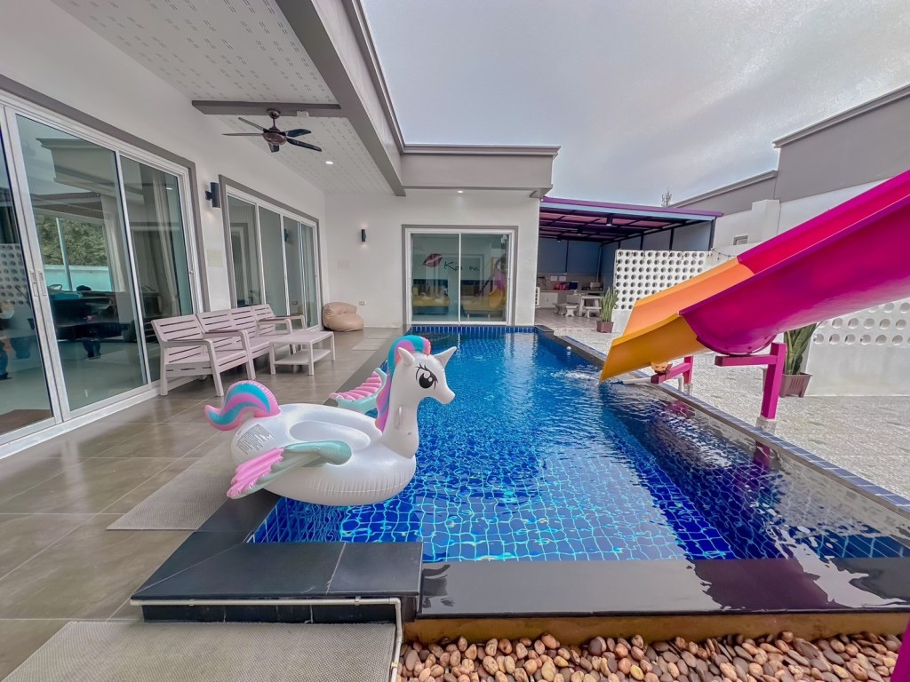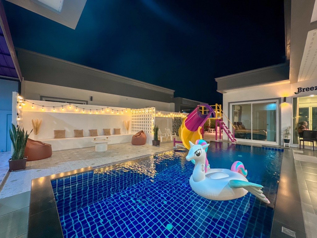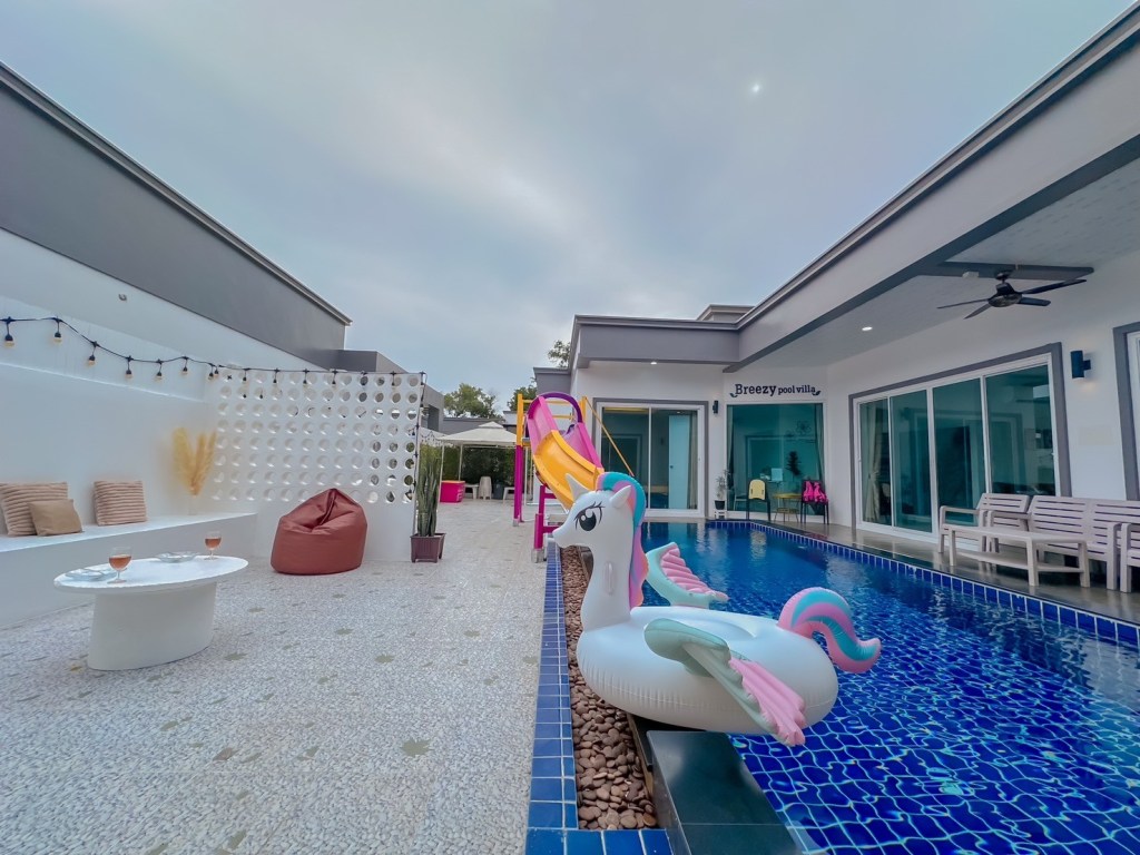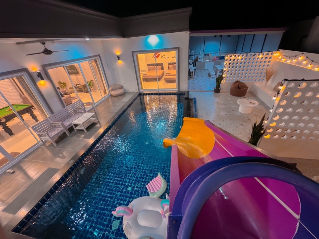 🎀ตกแต่งในสไตล์สีสันสดใส ฟังชั่นครบจัดเต็มเหมือนเดิมค่ะ มาพร้อมบริเวณกว้างๆสนามข้างสระ และมุมถ่ายรูปชิคๆ💖มีครัวข้างบ้านใกล้ๆกับจุดปิ้งย่าง สะดวกสบายอุปกรณ์ครบครันในการทำอาหารเลยคะ😊 #รับประกันความสะอาดและตรงปก