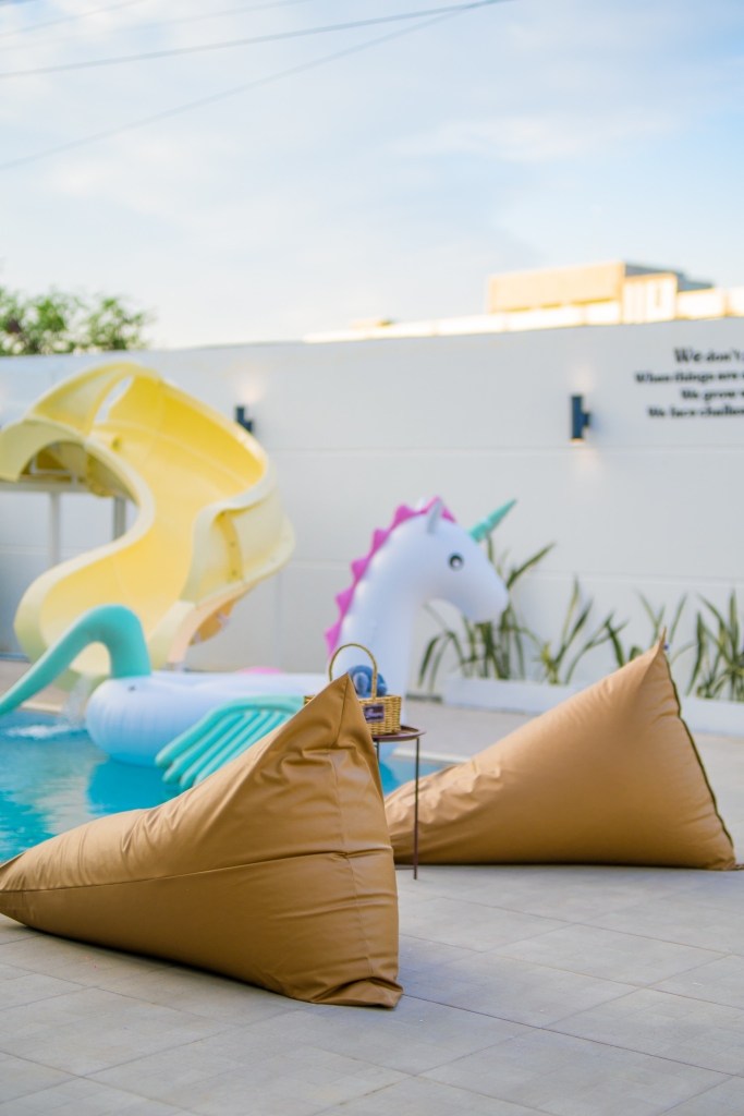 ขนาดสระเด็ก 34.5 เมตร (ลึก 60 ซม) ขนาดสระน้ำ 74.5 เมตร (ลึก 140 ซม)