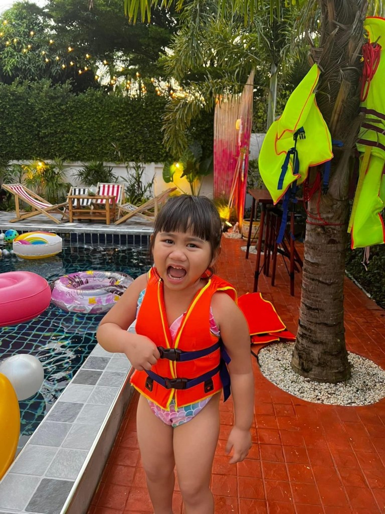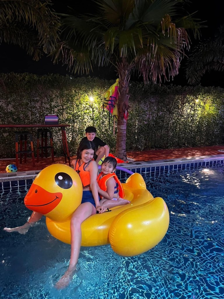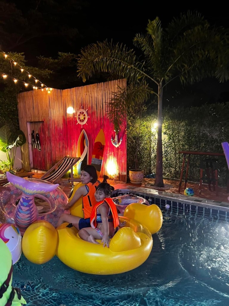 สระว่ายน้ำ 4×8 เมตรค่ะลึก1.7 เมตรค่ะ มีเสื้อชูชีพ
