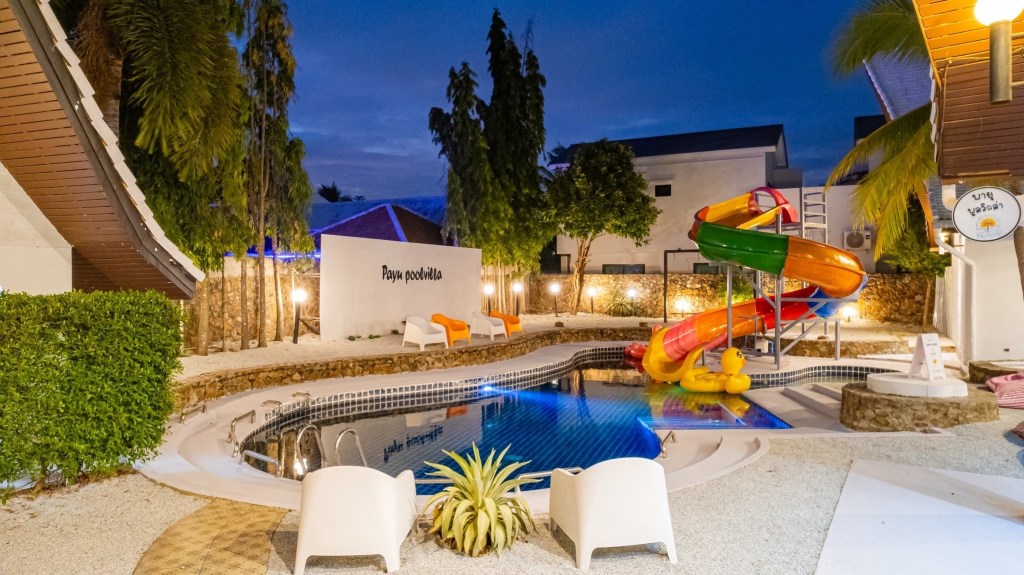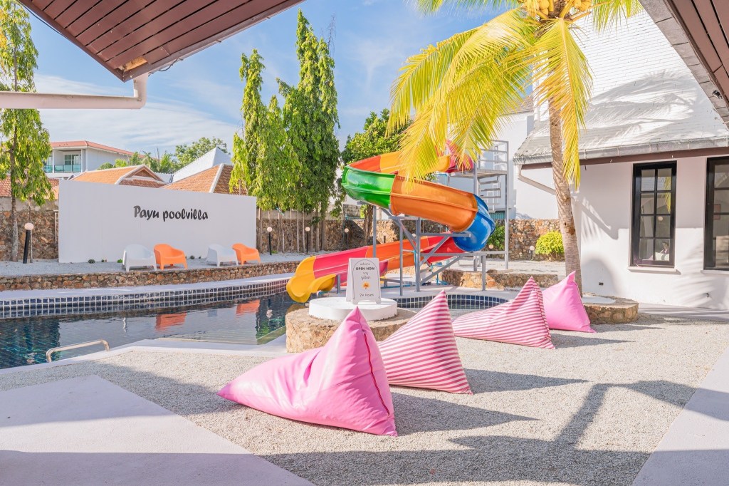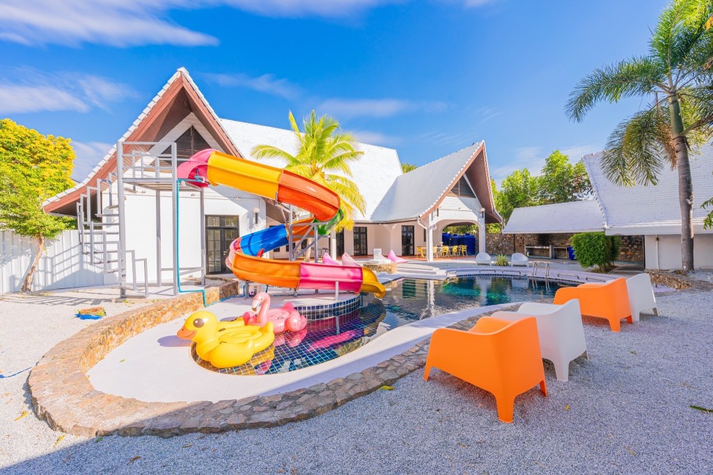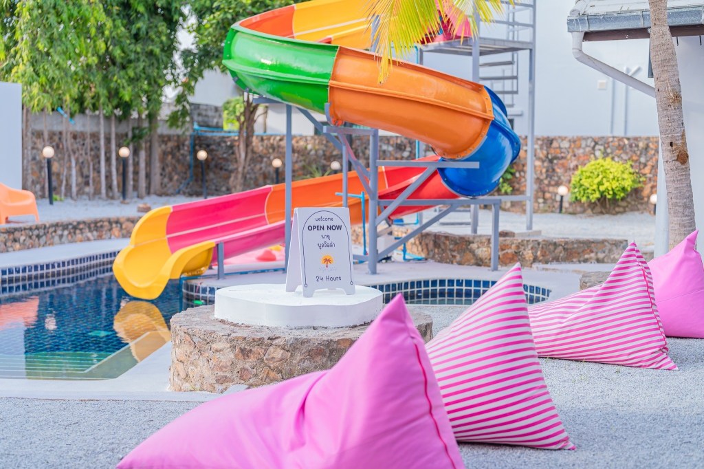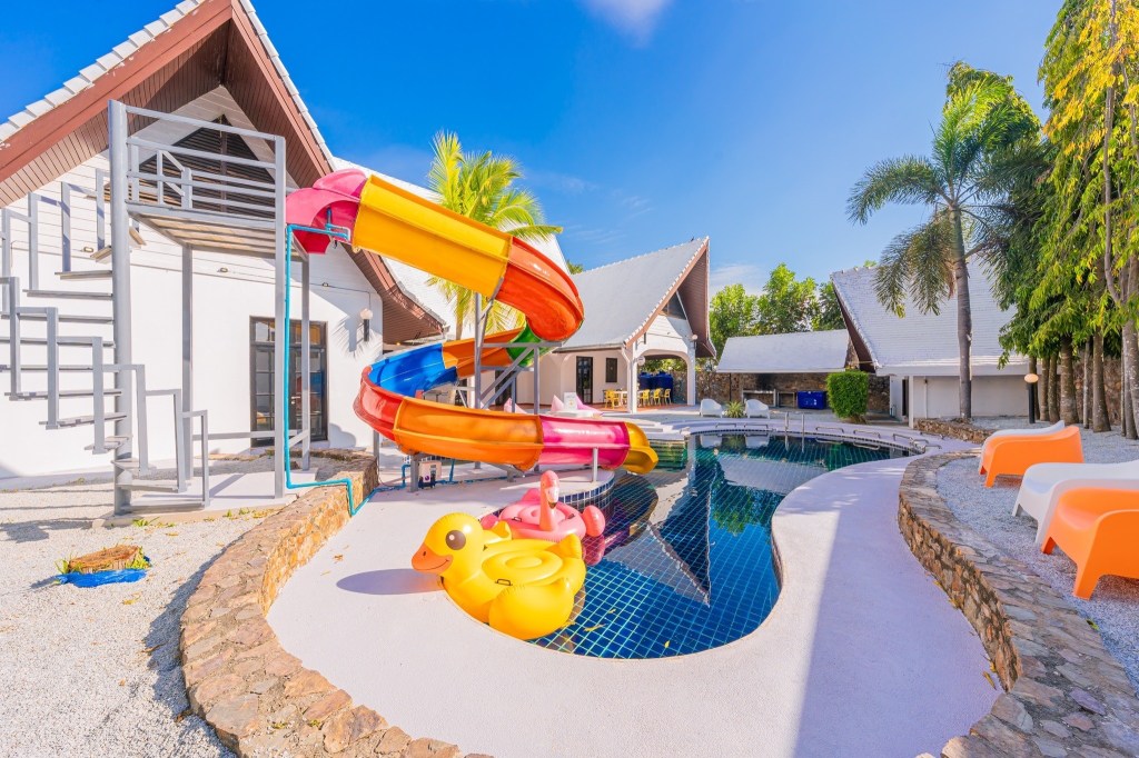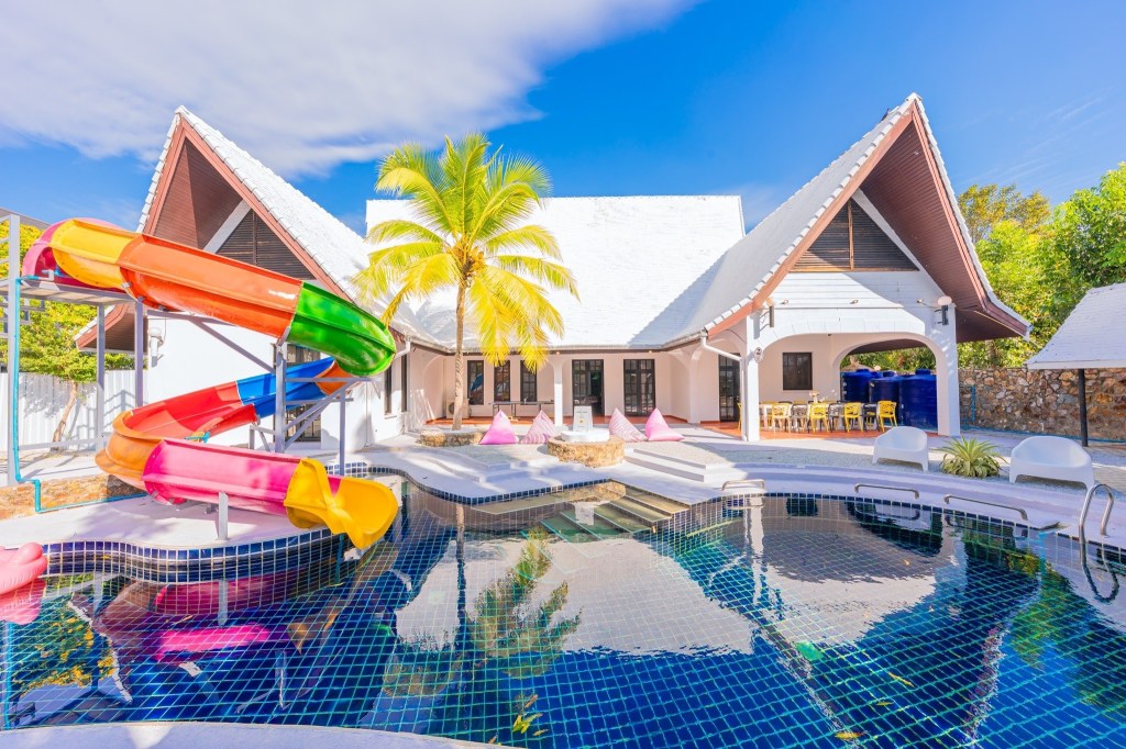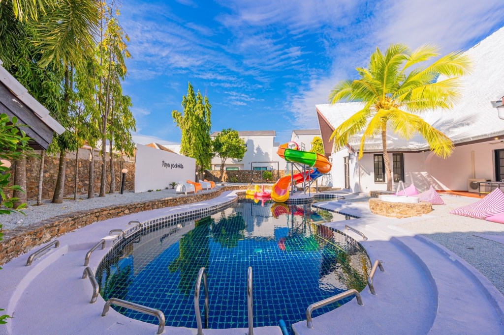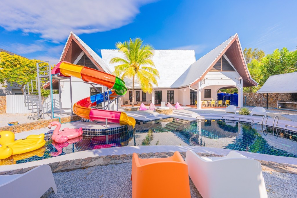 ้านพักพูลวิลล่า สไตล์บาหลีมาในโทนขาว ผสมผสานสีสันน่ารักๆคาวาอิสุดๆเลยค๊า สไลเดอร์ยักษ์ ฟังก์ชั่นครบ จบที่นี่ แถมราคาถูก ด้วยค๊า😍😍