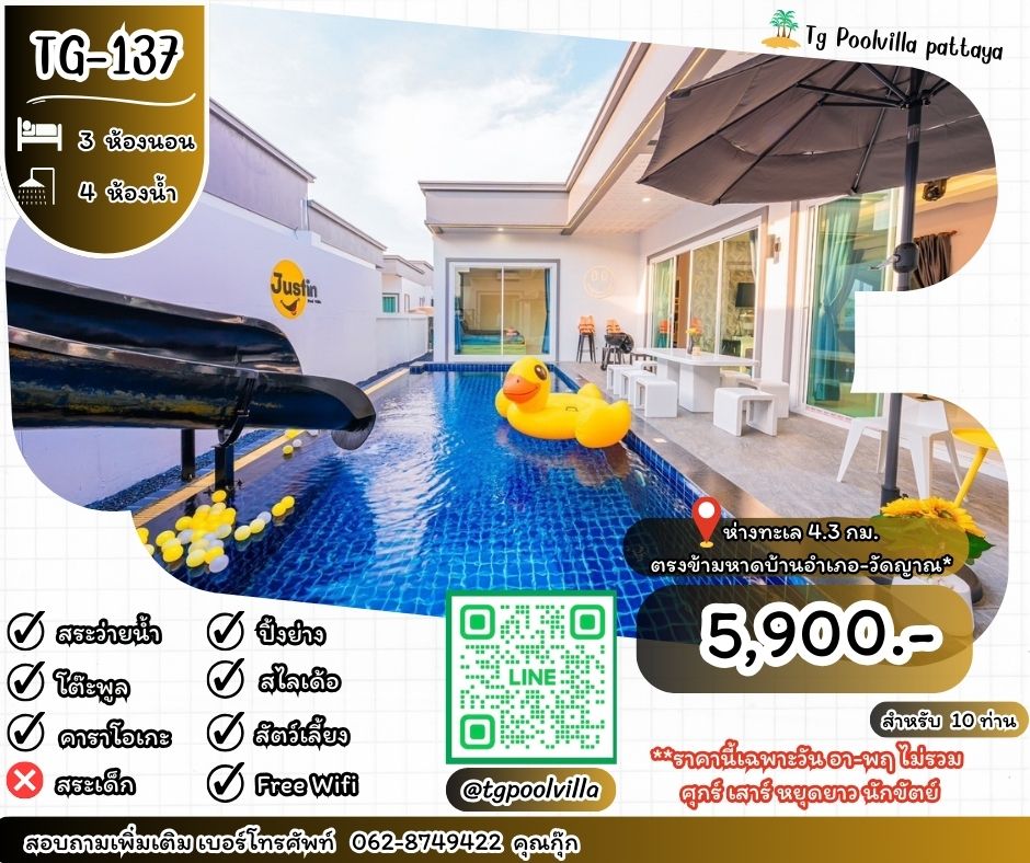 LINE ID : @tgpoolvilla (มี@นำหน้านะคะ)