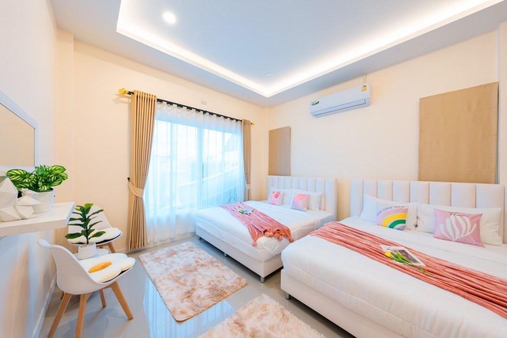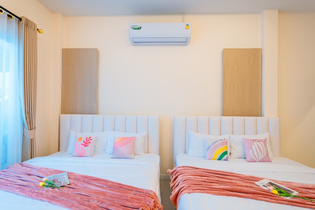 • ห้องที่ 1 : เตียง 6 ฟุต 2 เตียง (ห้องน้ำในตัว)